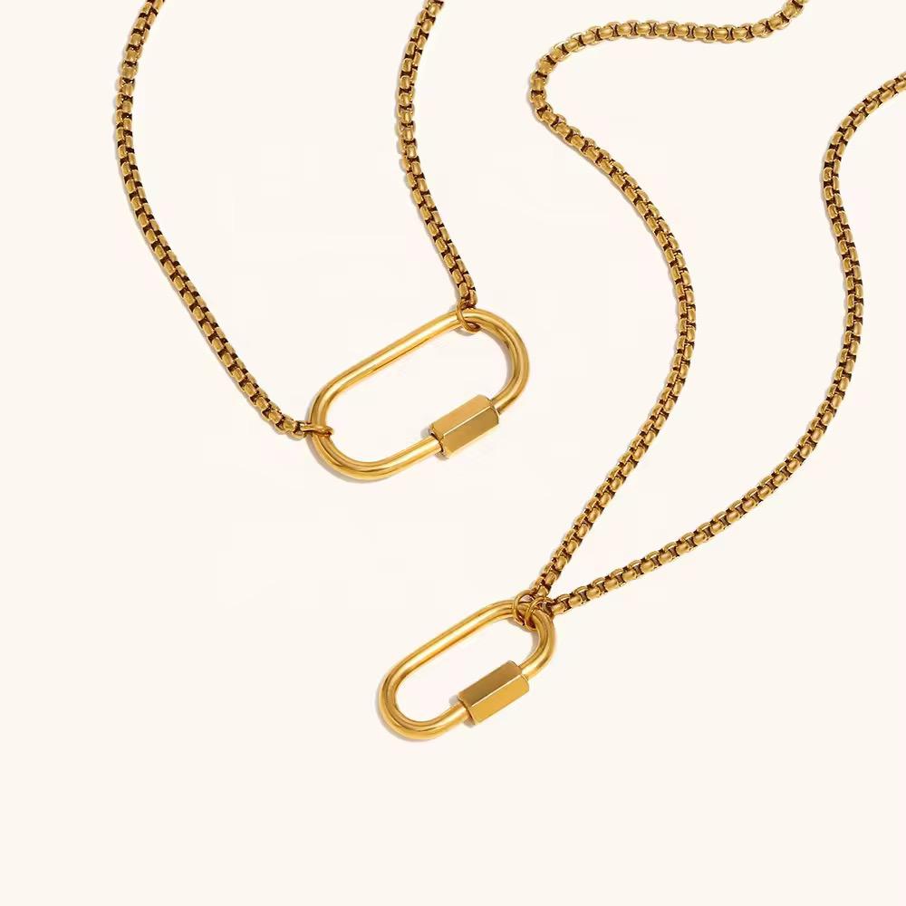 This 18k gold clasp necklace is a trendy and smart addition to your summer dress...