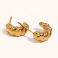 Crafted with high quality stainless steel and plated with 18k gold, our Croissant Stud earrings are both elegant and durable. The croissant design adds a touch of sophistication to any outfit, making them the perfect accessory for any occasion. Upgrade your style with these stylish and long-lasting earrings.
