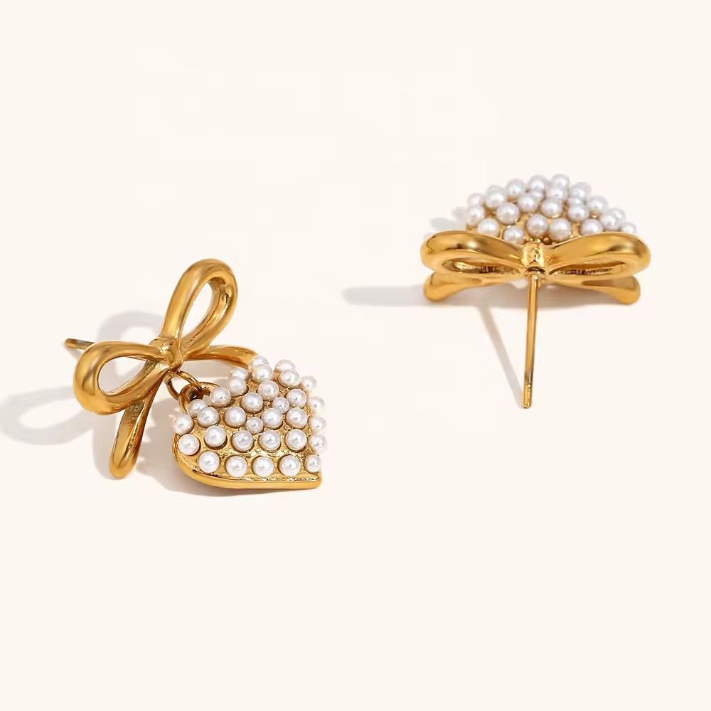 These stunning heart bow earrings are the perfect addition to any jewelry collection. Made with 18k gold, these trendy and stylish earrings are perfect for everyday wear. Add a touch of charm to any outfit with these must-have earrings!