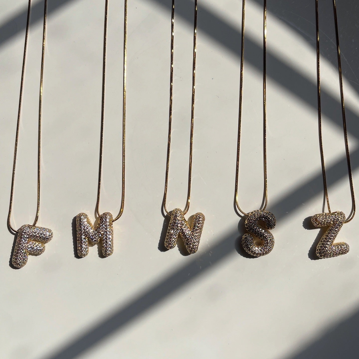 Our Zircon Initial Necklace features a beautifully crafted alphabet letter, adorned with brilliant zircon stones for diamond-like sparkle. Elegant, timeless, and uniquely yours.