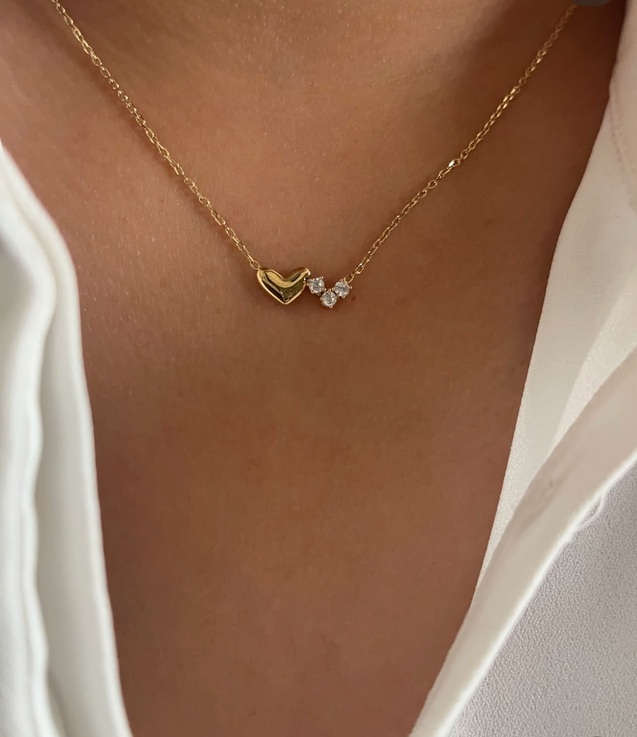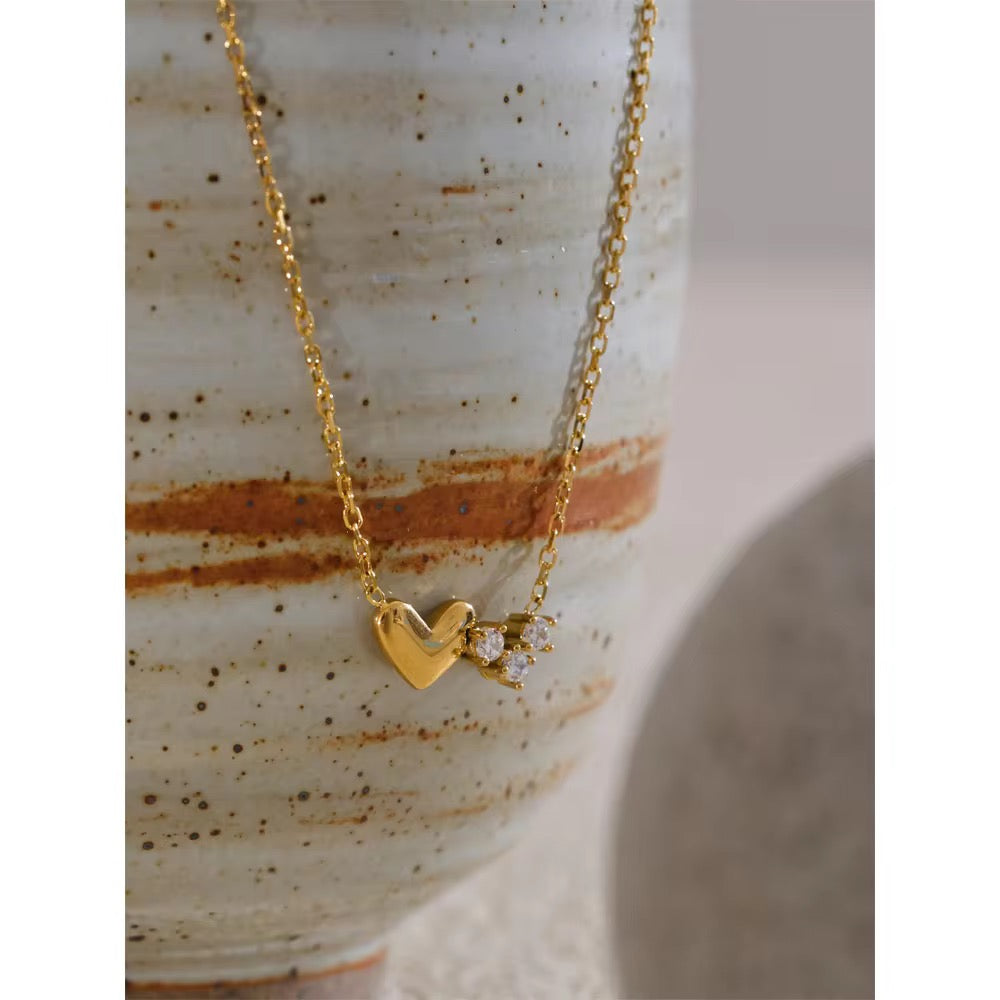 This delicate heart necklace with three sparkling zircons is designed to add a soft, romantic touch to your everyday look. Crafted with a sleek finish and subtle shine, it’s perfect for daily wear or gifting someone special. Minimal, elegant, and timeless.