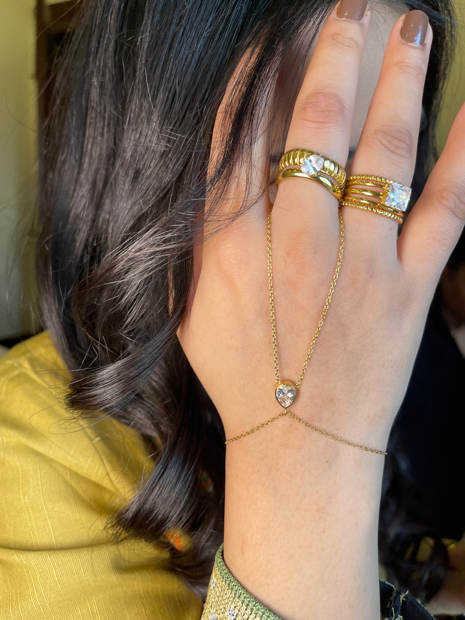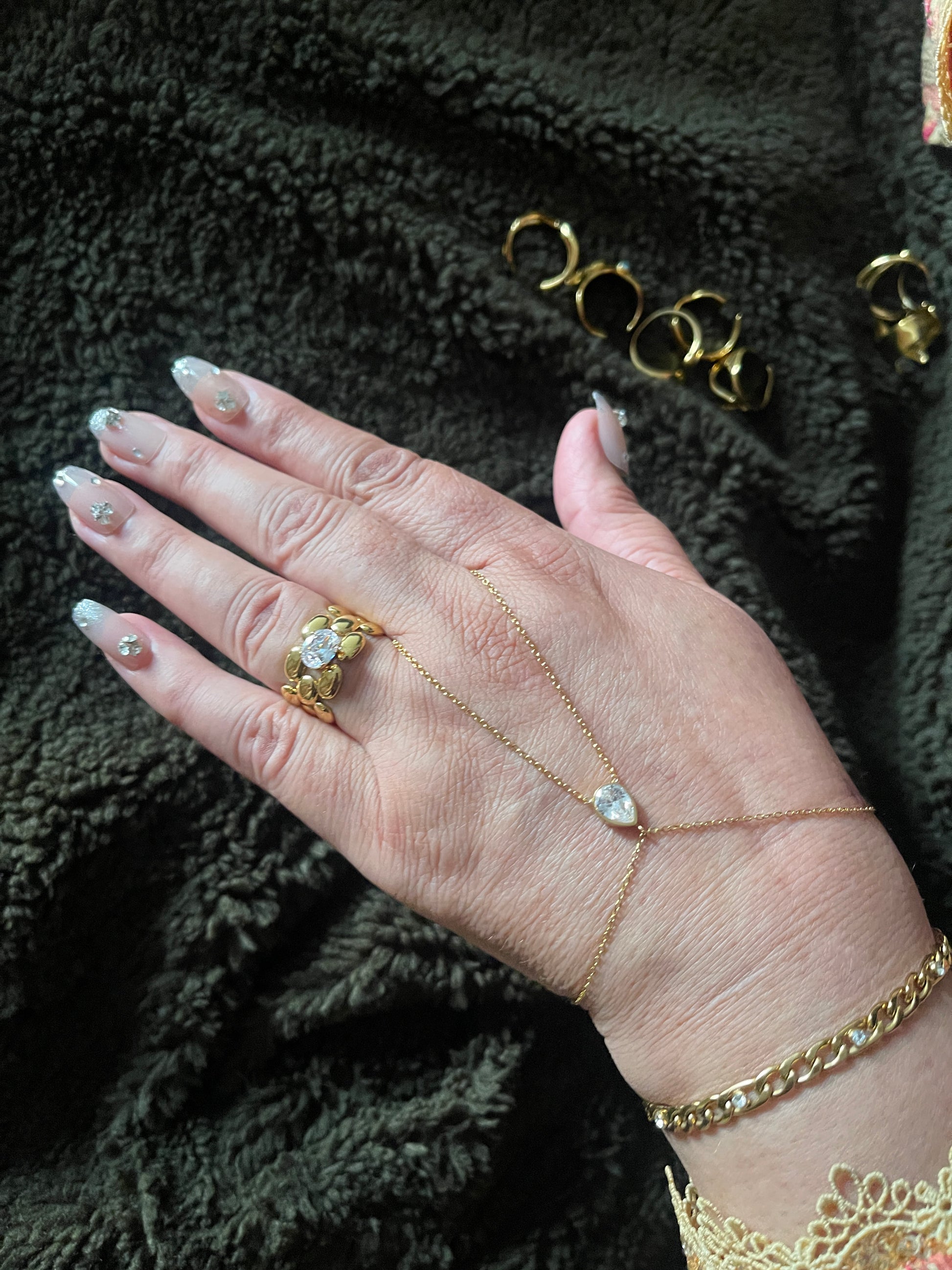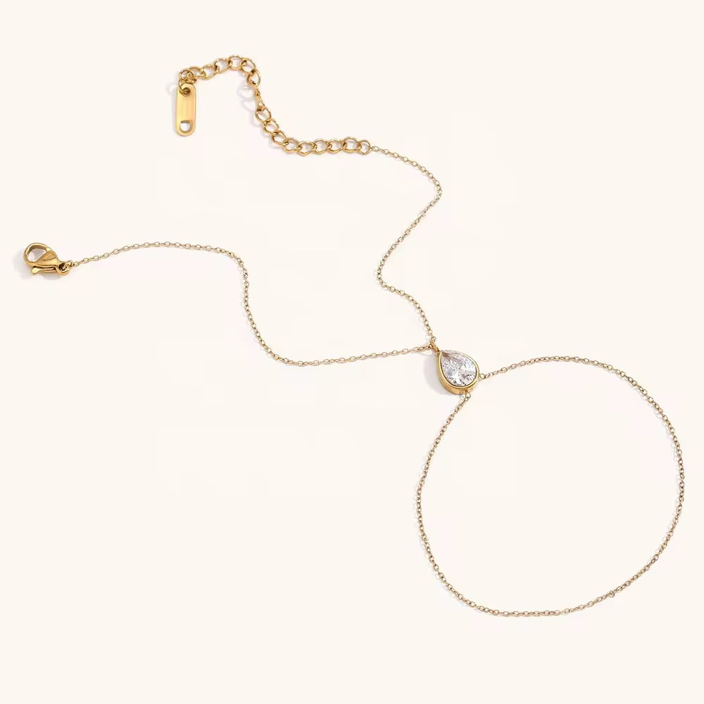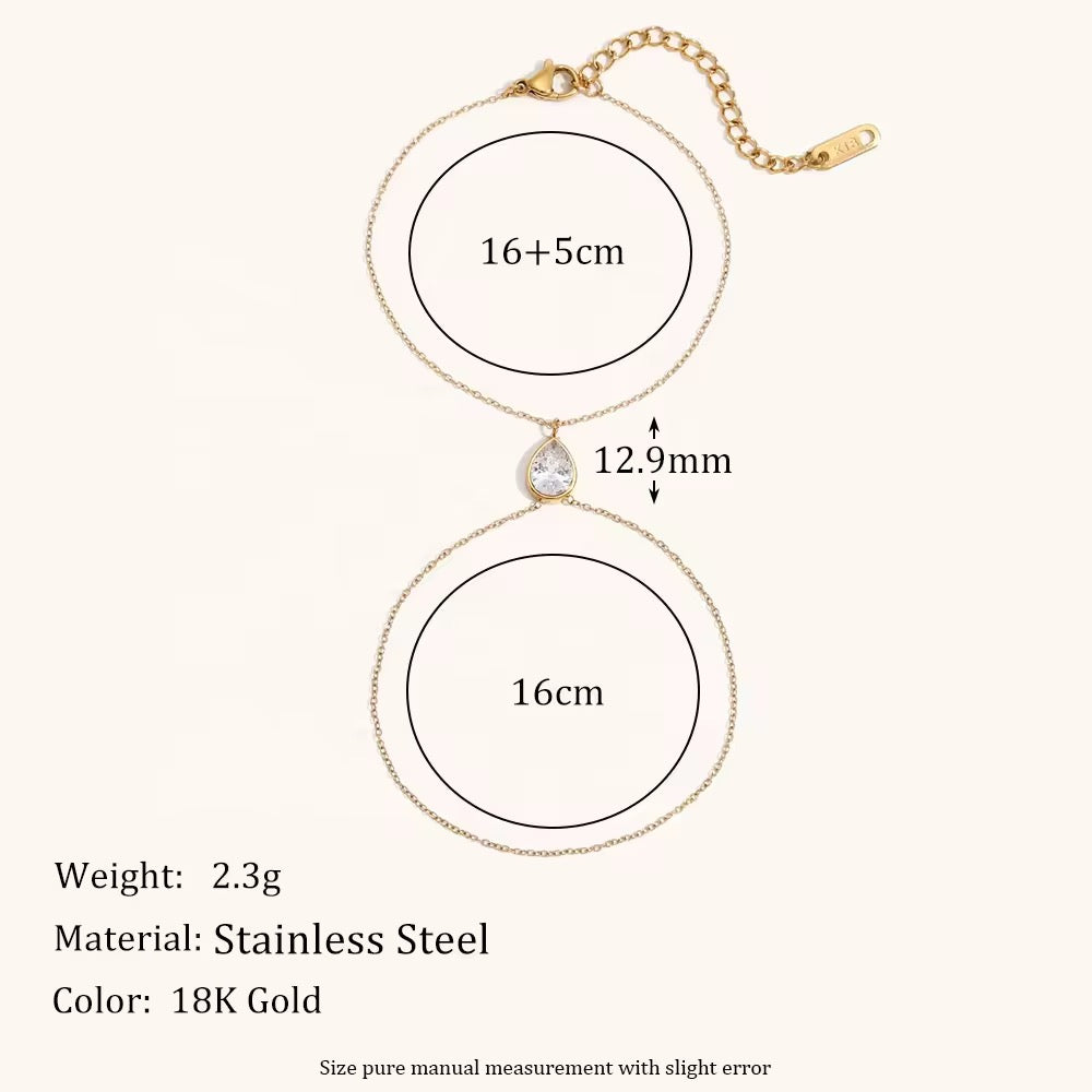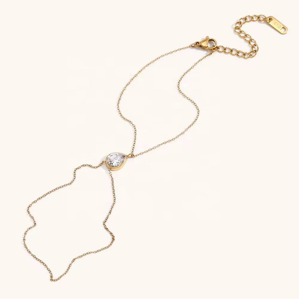Add a touch of sparkling elegance to your hands with Èclat’s zircon hand chain. Designed with premium stainless steel and coated in rich 18k gold plating, this piece offers a brilliant, diamond-like shine with long-lasting durability.